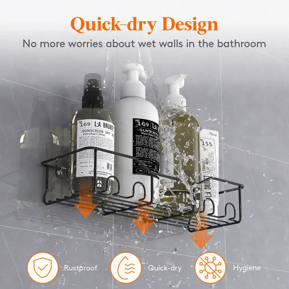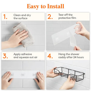 Easy Installation: Simply stick the adhesive strips and then hang the bathroom shower organizer. No drilling is needed.