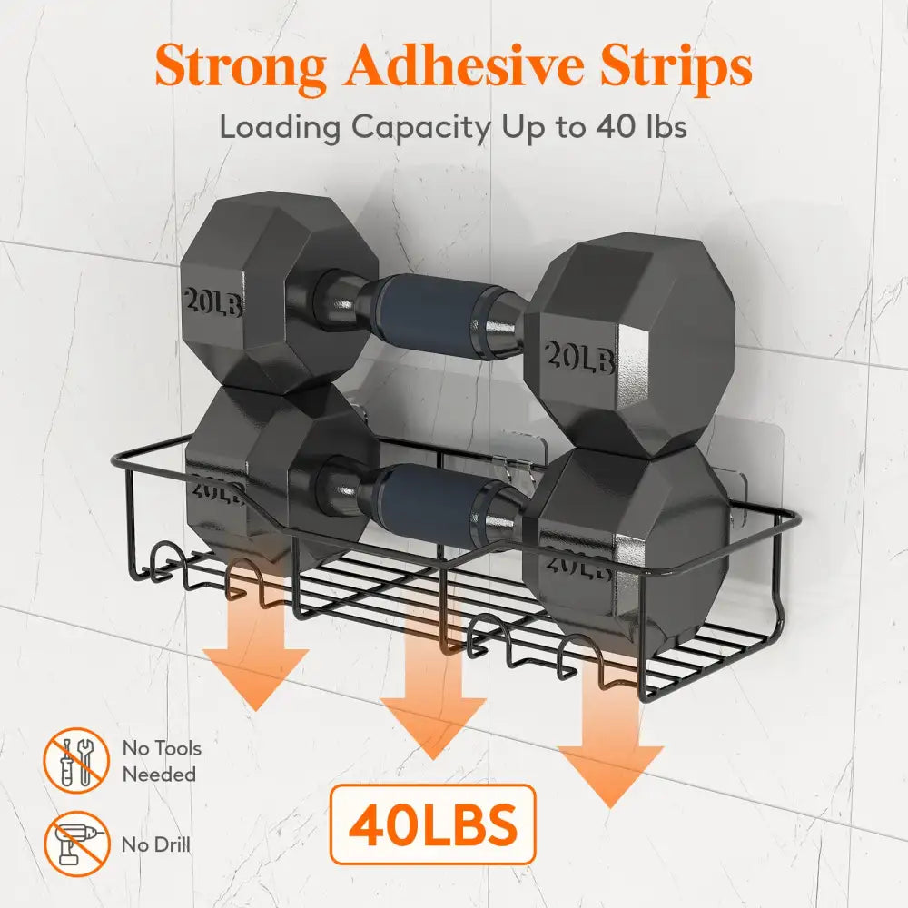 Load Capacity Up to 40LBS: The adhesive strips are strong and water-resistant and each shower caddy can easily hold up to 40lbs.