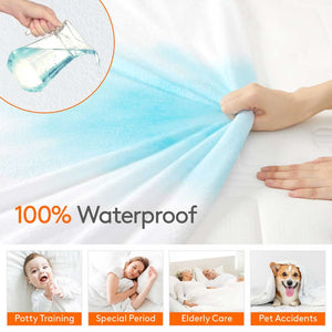 • 100% Waterproof: The double layer construction is undergone a 24 hours waterproof test, that confirms to protect against sweats, spills, perspiration, urine and body fluids.